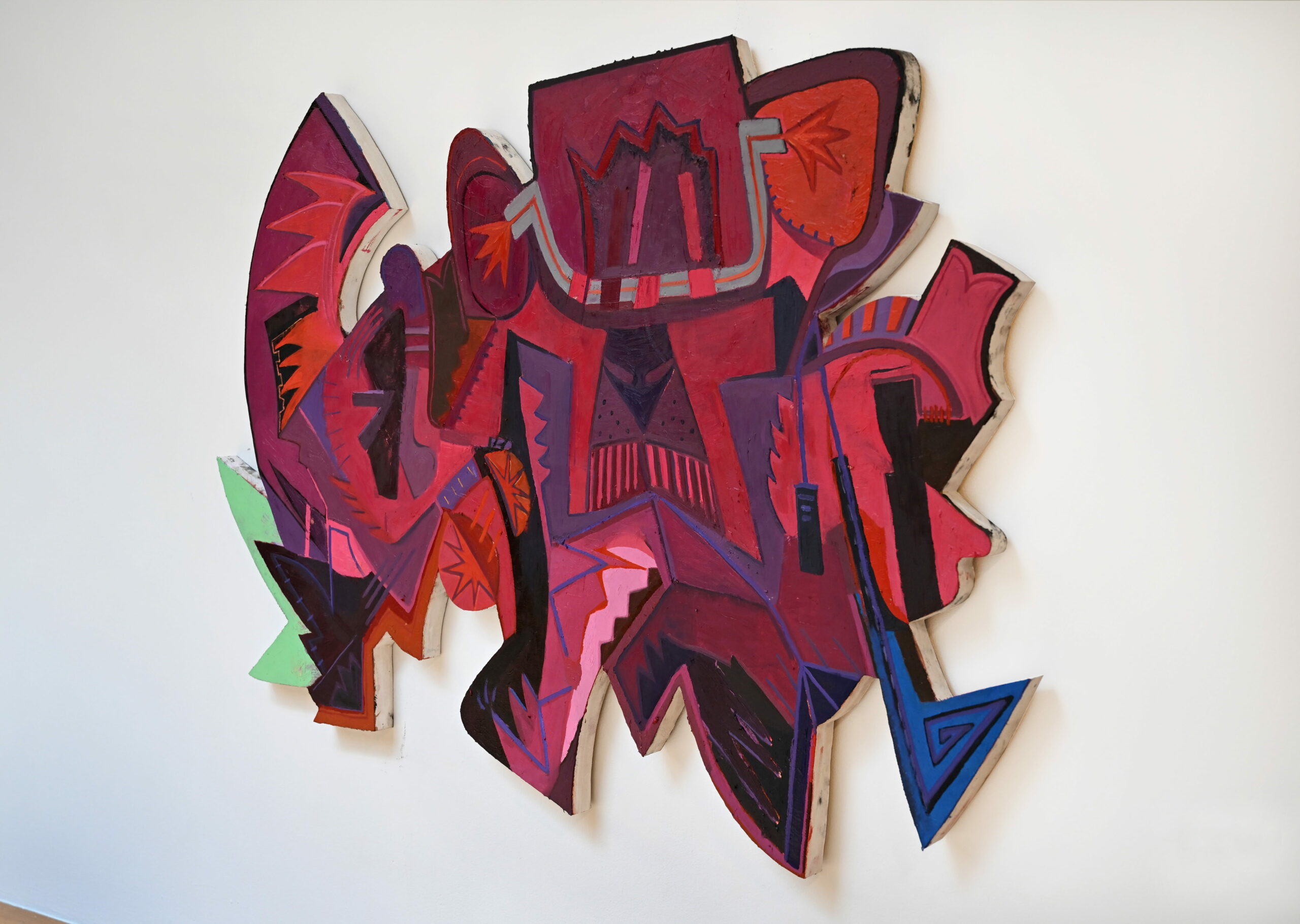 My work explores intuitive creation through layering: building up lines, forms, and colors, then scraping them away to reveal what lies beneath. This process recalls earlier states of the painting, making visible its physical duration and the accumulation of decisions over time. The resulting image holds more than a single moment; it carries traces of what has been buried, altered, and reconsidered. While painting, I become acutely aware of shifting internal states as doubt, frustration, defeat, and hope surface through the act of making. I’m interested in how these sensations reveal themselves visually, allowing paintings to speak in ways that resist rational language. I’m also fascinated by how perception evolves—how a work can feel foreign in one moment and unexpectedly alive in another, despite remaining unchanged. Painting, for me, extends beyond ideas of beauty; it is a deeply personal and sometimes jarring encounter, a process that unsettles and recalibrates the nervous system without guaranteeing an outcome. This unpredictability keeps me engaged, with each finished piece unfolding into a curiosity about the next. Often, I am simply searching for confirmation that a fleeting or difficult-to-articulate feeling is real. Rooted in a “just paint” ethos, my practice thrives on immersion and persistence, whether in a notebook, on wood, or across a shaped canvas, embracing the tension of not knowing while working through each decision as it unfolds.