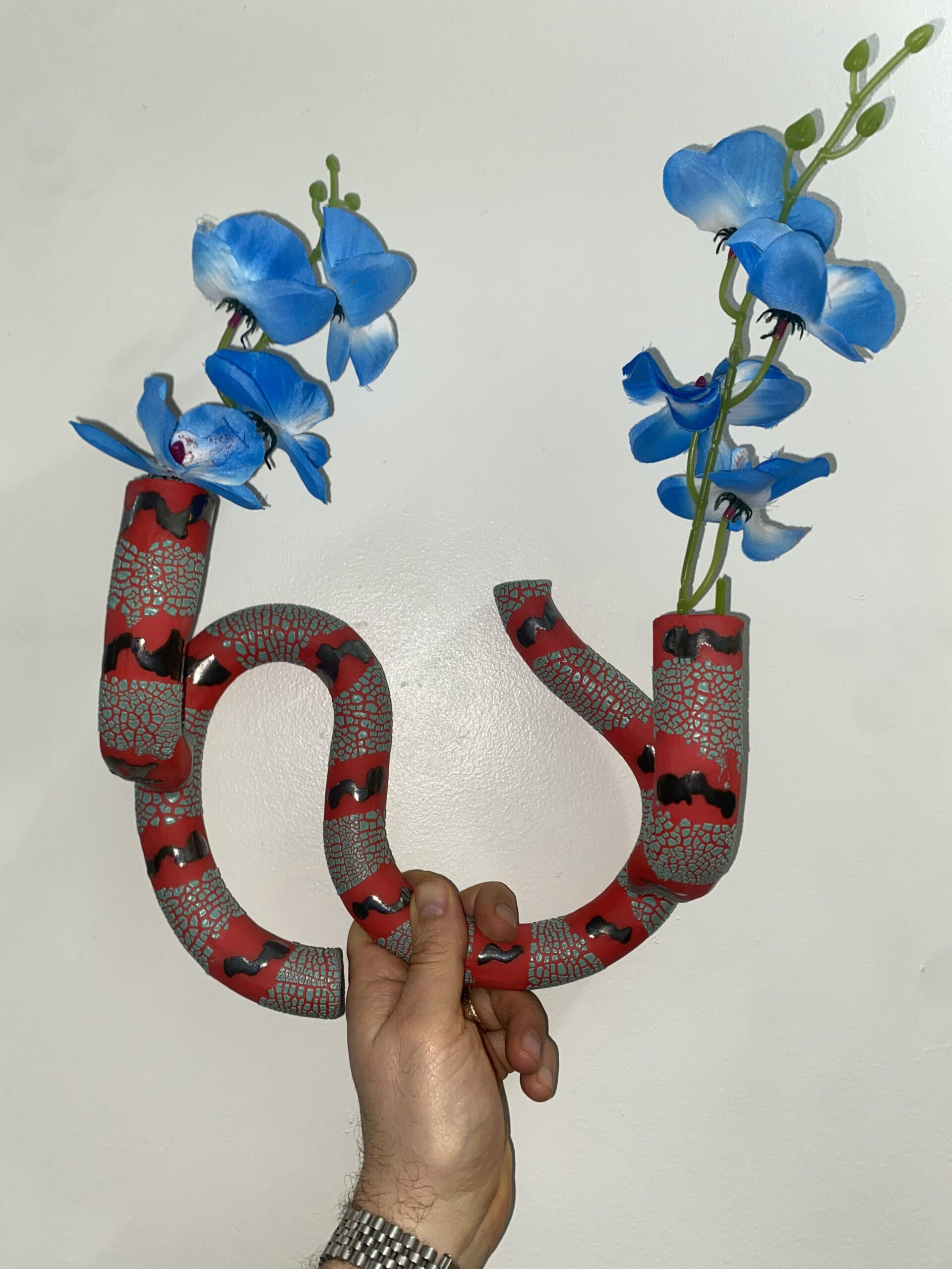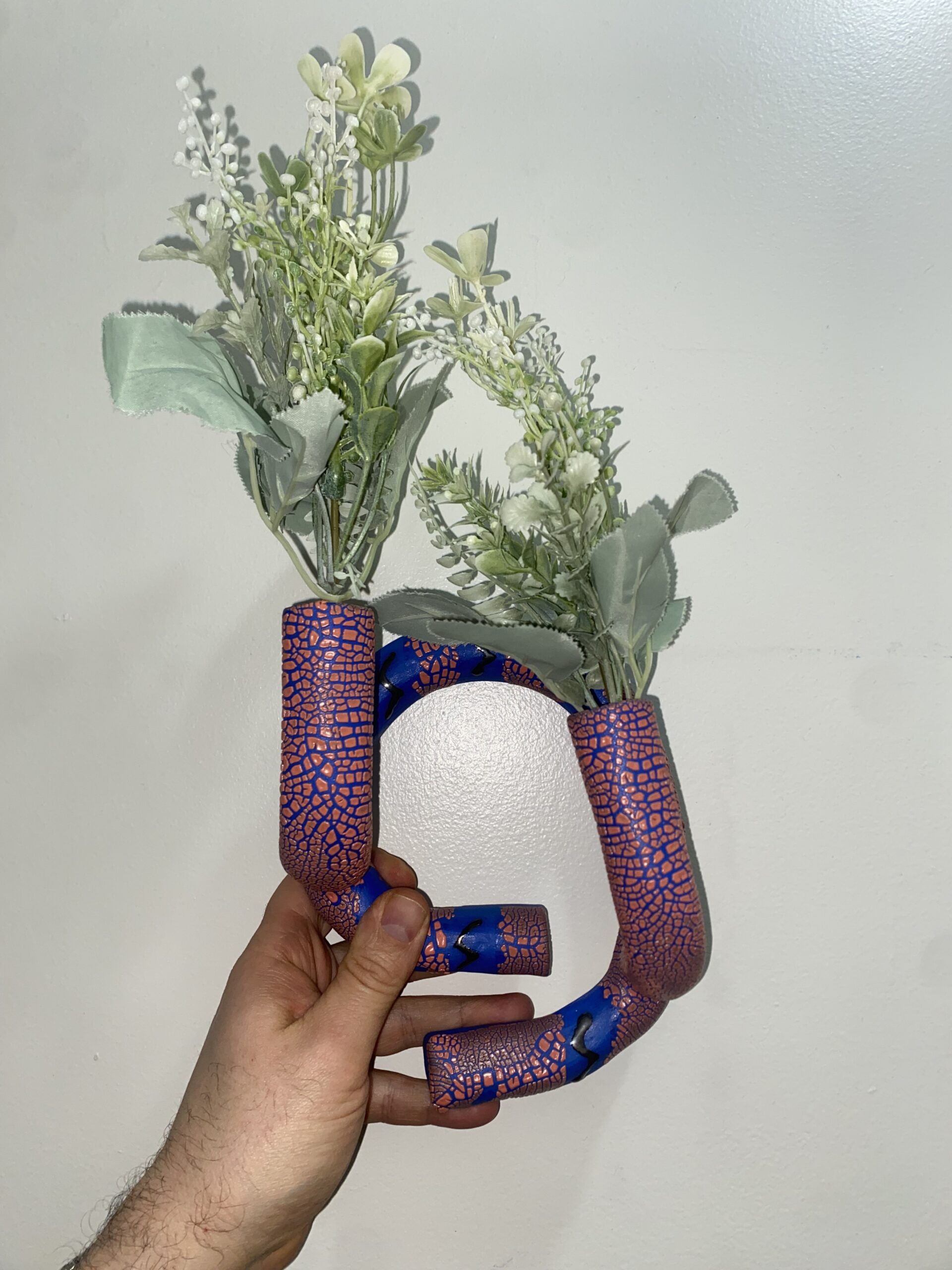 I started making work in an effort to bridge the gap between me buying weird ceramics and me making weird ceramics. Over the years it's grown from mugs to vases to candelabras and menorahs to more experimental wall pieces, each iteration incorporating lessons from the previous ones. Playing with color, texture, and shape, I aim to push the ideas of what functional ceramics look like while still making things that people can use. I'm inspired by the work of Ron Nagle, Betty Woodman, and handmade things I find in thrift shops.v